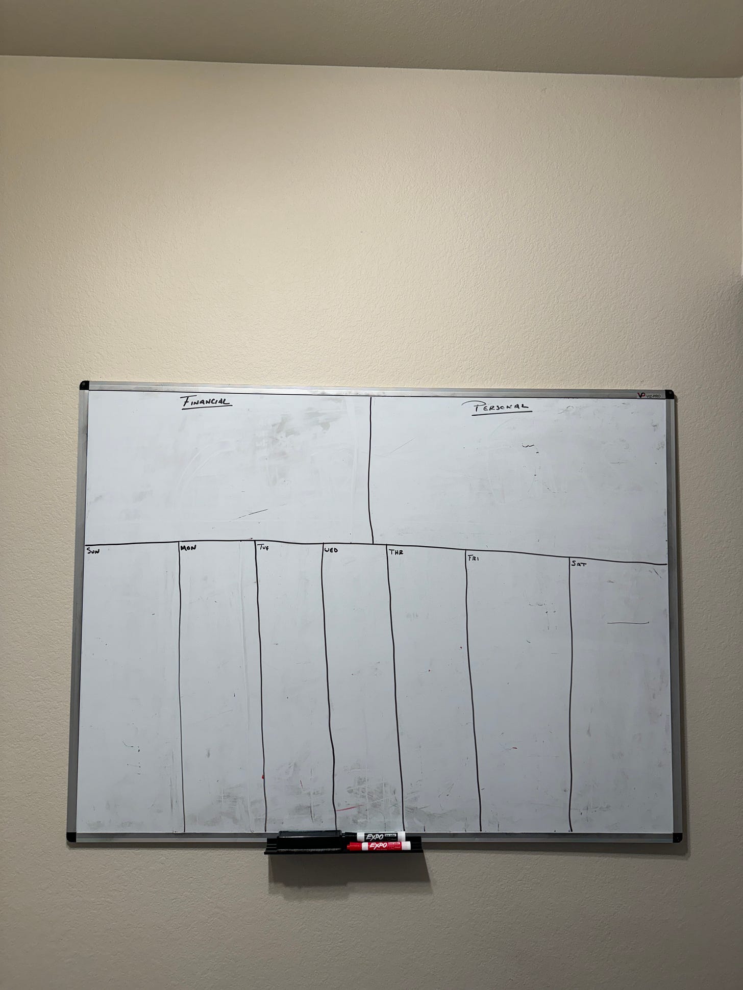 At the end of everyday I take a green marker or a red marker and I make a check or an X.